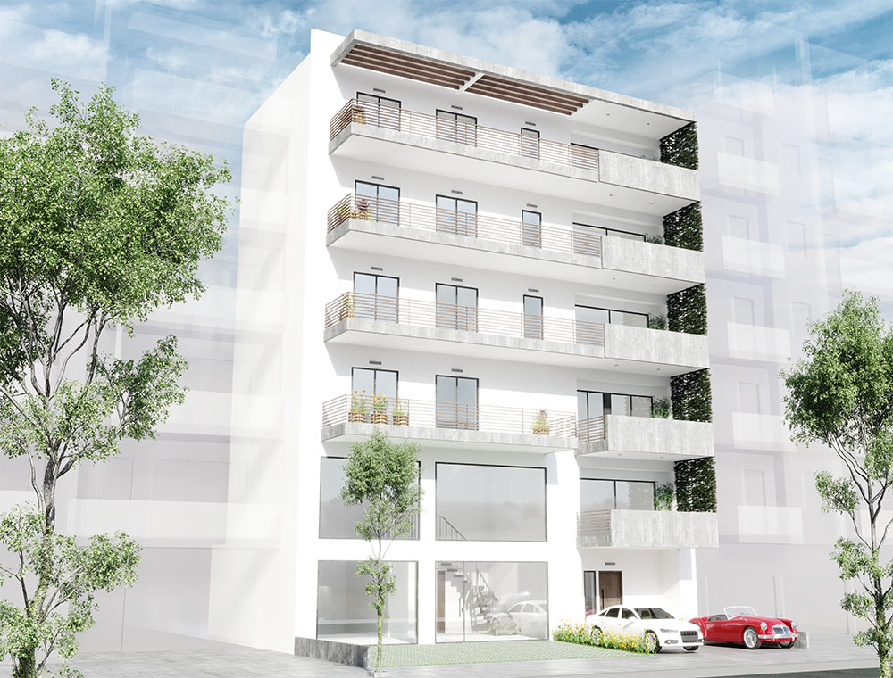 Νέα Εξαώροφη Οικοδομή με Pilotis και Κατάστημα